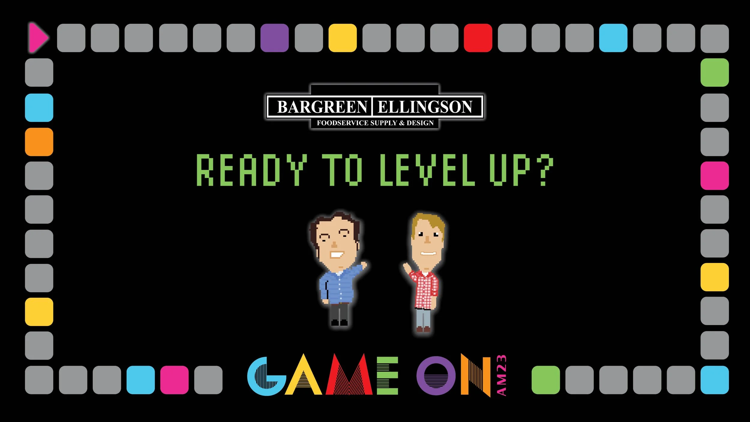 Annual Meeting 2023. Who doesn’t love seeing the President and Vice President as pixel characters on an retro video game board? Branding assets included the logo, the gameboard theme and pixel characters, large format banners, and wouldn’t have been complete without a 6 ft wide vinyl game board wrap that traversed the span of the Convention center floor in between booths!